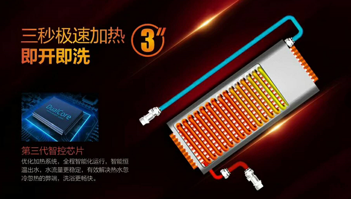 3、即開即熱,3秒出熱水,5秒恒溫,解決了儲水加熱慢長等待的問題